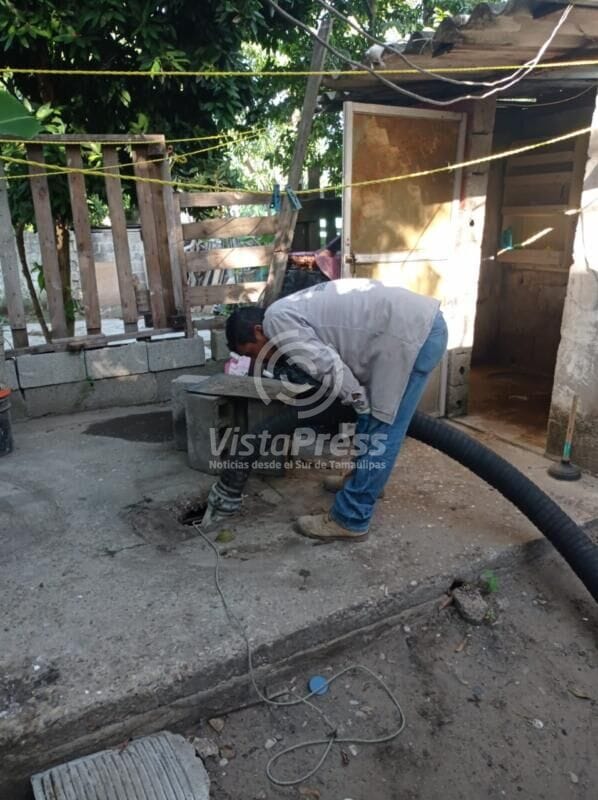 Personal del organismo operador del agua inició la limpieza de fosas sépticas en domicilios de la colonia Nuevo Madero, mientras que en la colonia Guadalupe Cervantes realizó el retiro de residuos en instalaciones sépticas de casas-habitación ubicadas en las calles Jaibas y Garzas, de la colonia Guadalupe Cervantes.