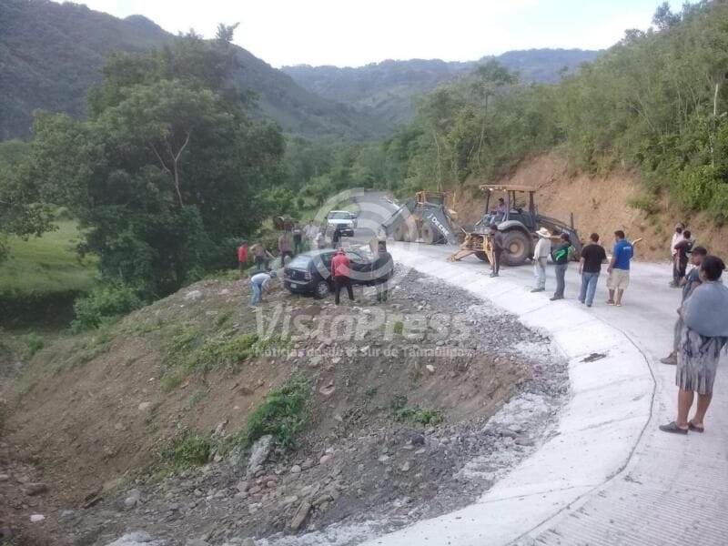 Fueron obreros que construyen la carretera, quienes acudieron al auxilio del conductor y con las máquinas pesadas, sacaron el vehículo antes del arribo de alguna autoridad.