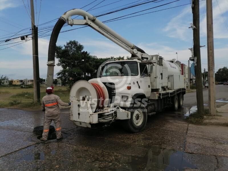 La Comisión Municipal de Agua Potable y Alcantarillado de Altamira llevó a cabo, en tiempo y forma, labores de desazolve y mantenimiento de líneas generales de drenaje en diferentes sectores de la ciudad, empleando en esas acciones camiones tipo vactor.