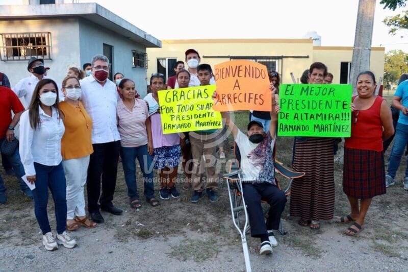 Altamira, Tams.-Alrededor de 350 personas serán beneficiadas de manera directa gracias al arranque de pavimentación, construcción de guarniciones y banquetas así como instalación de alumbrado público que el presidente municipal de Altamira, Mtro. Armando Martínez Manríquez, efectuó en los fraccionamientos Fundadores y Arrecifes.