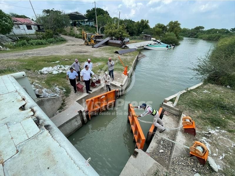 Altamira, TAM.- Con el propósito de garantizar el adecuado funcionamiento de las compuertas de la exclusa del estero El Camalote y prevenir el desperdicio de agua dulce del sistema lagunario, el gerente general de la COMAPA Altamira, Ing. Omar Hernández Leines, supervisó la operación de esta infraestructura.