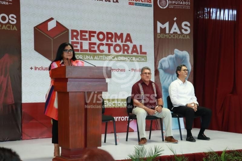 El arranque de esta sesión informativa estuvo a cargo de la diputada federal por Tamaulipas, Blanca Araceli Narro Panameño, quien a través de vídeos informativos compartió los puntos clave para conocer en esencia lo que esta propuesta proyecta para México.