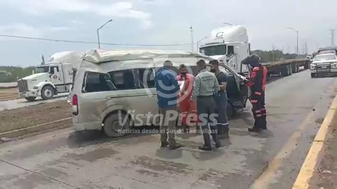 Altamira, Tam.- El exceso de velocidad, falta de pericia al manejar y el pavimento húmedo, fueron las principales causas por las que una camioneta de transporte de personal volcó rumbo al puerto de Altamira resultando 6 trabajadores lesionados.