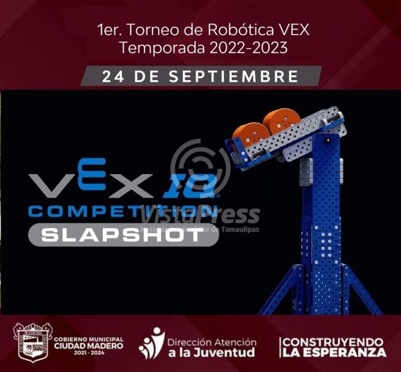 Un aproximado de 200 jóvenes provenientes de diferentes municipios de Tamaulipas, participarán en el Primer Torneo de Robótica VEX de la temporada 2022-2023 a realizarse este sábado 24 de septiembre en la Unidad Deportiva, el cual es organizado por el Gobierno de Ciudad Madero y la academia de robótica VEX-REEDUCA.