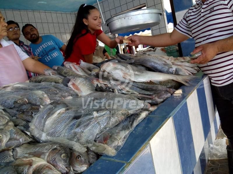 «Hay tilapia de 3 kilos por cien pesos, filete de 80 pesos kilo, tenemos buenos precios, y eso nos hace tener buenas ventas», indicó el comerciante.