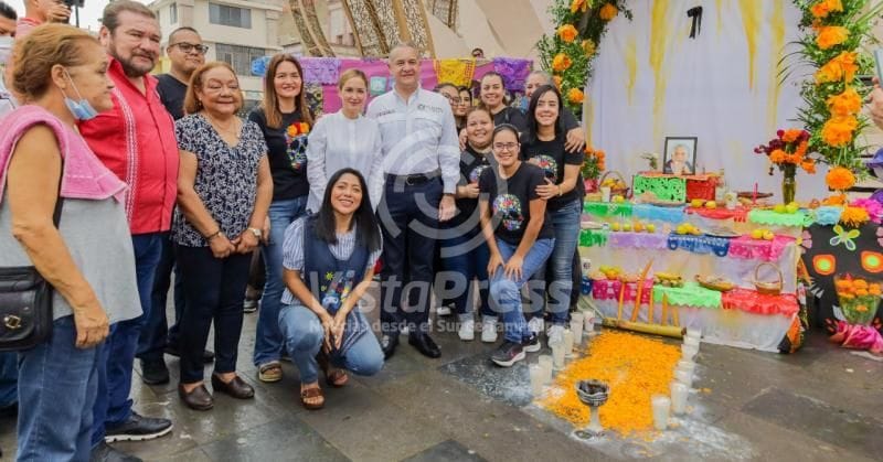 Acompañado por su esposa, la Sra. Ana Cristina Organista de Oseguera, presidenta del DIF Madero, el munícipe recorrió los altares elaborados por escuelas de la urbe petrolera, Caic’s y Direcciones municipales, expresando en cada uno de ellos, una extraordinaria riqueza cultural.