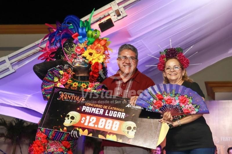 Altamira, Tamaulipas.- Con la asistencia de miles de ciudadanos y la premiación oficial de los participantes de los concursos de altares, catrinas y comparsas, concluyó el “Festival de Luz y Oscuridad Xantolo 2022: Altamira Somos Todos”, mismo que estuvo encabezado por el presidente municipal, Mtro. Armando Martínez Manríquez.