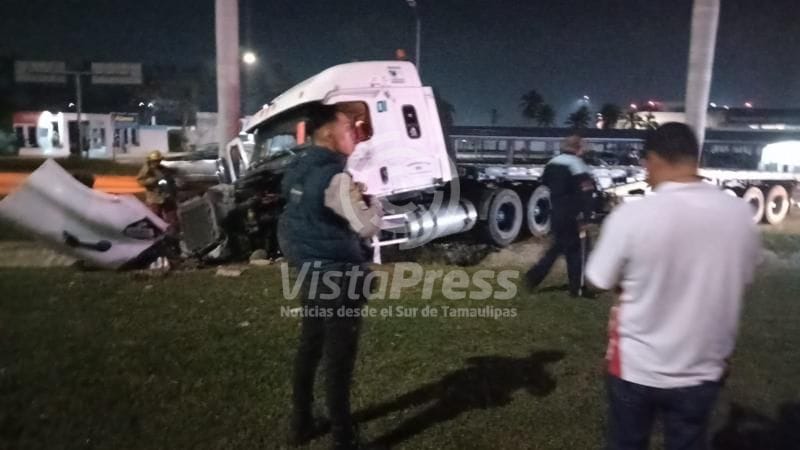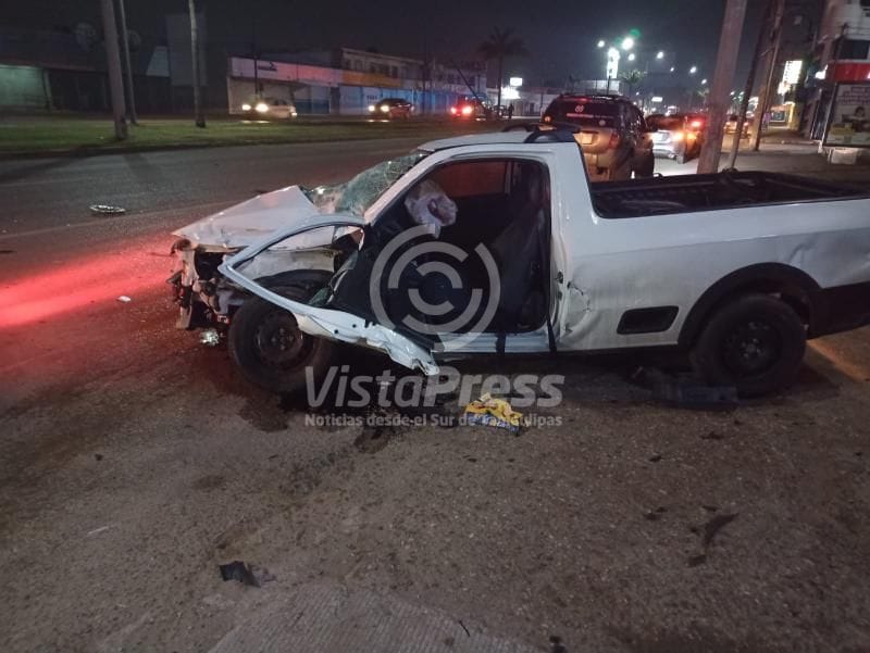 Esto ocurrió alrededor de las 23:45 horas del lunes en donde primeramente, al circular de norte a sur por la carretera Tampico Mante, impacta a un motociclista en el cruce con Avenida las Torres y metros adelante embiste a una camioneta tipo Chevy, quedando el conductor prensado en el interior.