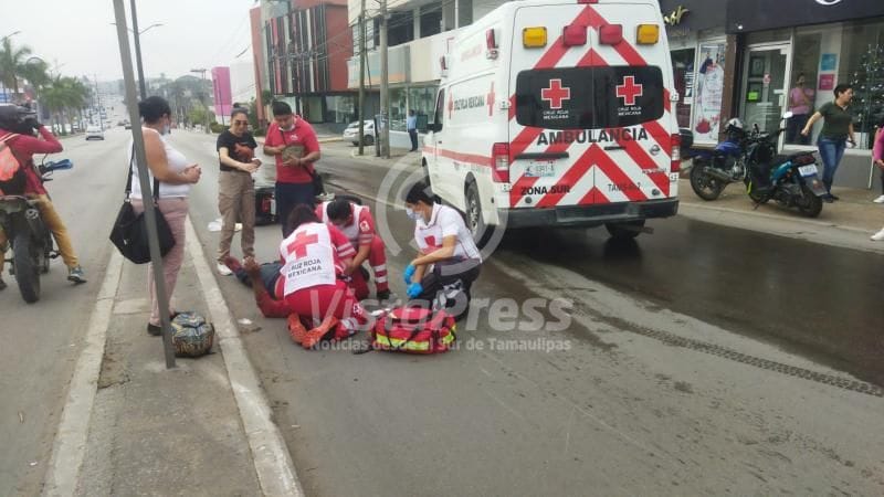Tampico, Tam.- Con fuertes golpes en la cabeza y diversas partes de su cuerpo resultó un repartidor de comidas motorizado al derrapar a bordo de su motocicleta en principal avenida de Tampico.
