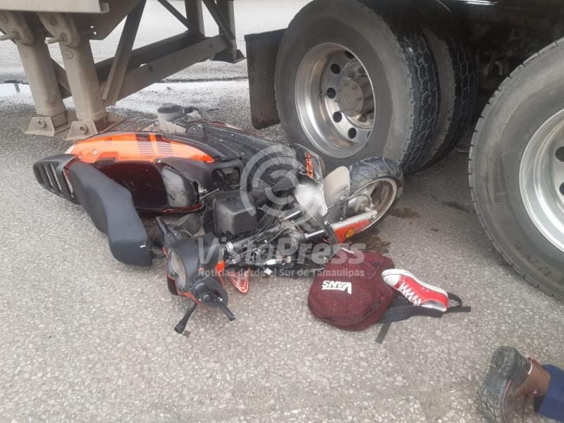 Altamira, Tam.- Con fuertes lesiones resultó un motociclista al impactarse en contra de un tráiler luego de que aparentemente no respetó el señalamiento de alto indicado por un semáforo.