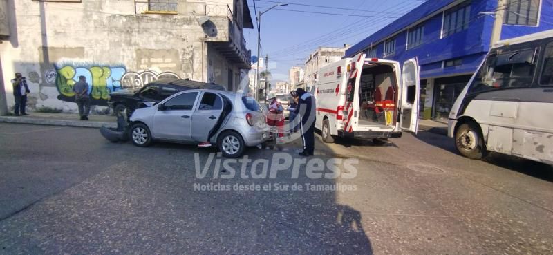 Madero, Tam.- Una joven mujer embarazada resultó lesionada en un choque registrado la mañana de este miércoles en la zona céntrica de la ciudad.