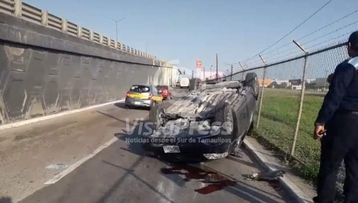 El vehículo con placas del estado de Texas era guiado de sur a norte, y al tratar de subir el puente el conductor se impactó contra el muro de contención, cayendo al carril alterno originando que el carro terminara volcado a un costado, frente a los terrenos del aeropuerto.