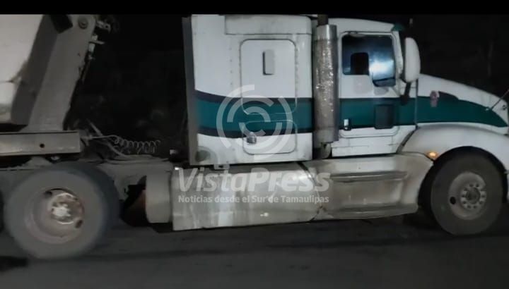 El otro vehículo implicados fue un tracto camión con remolque color blanco con franja verde tipo Freightliner, el cual circulaba de norte a sur en dirección al puente Pánuco, quedando atravesado metros más adelante de la gasolinera, luego del impacto con la otra unidad.