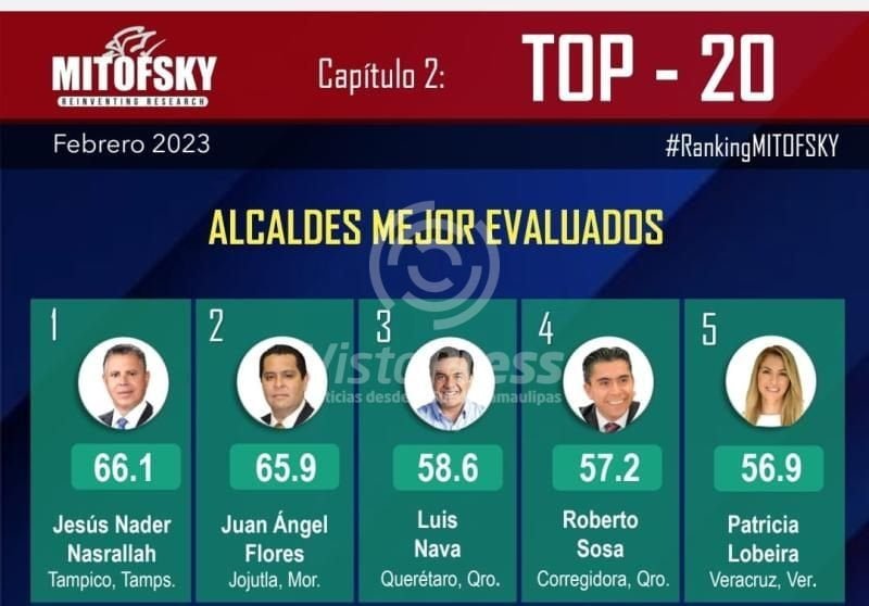 El mandatario porteño obtuvo una aprobación sobresaliente del 66.1% entre 108 alcaldes y 48 alcaldesas del país, cuyo promedio general fue de apenas el 45% de aprobación, lo que destaca el trabajo que al frente del Ayuntamiento de Tampico ha realizado Nader Nasrallah.