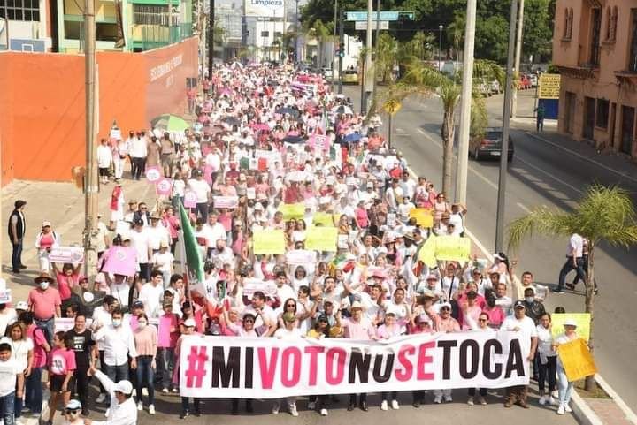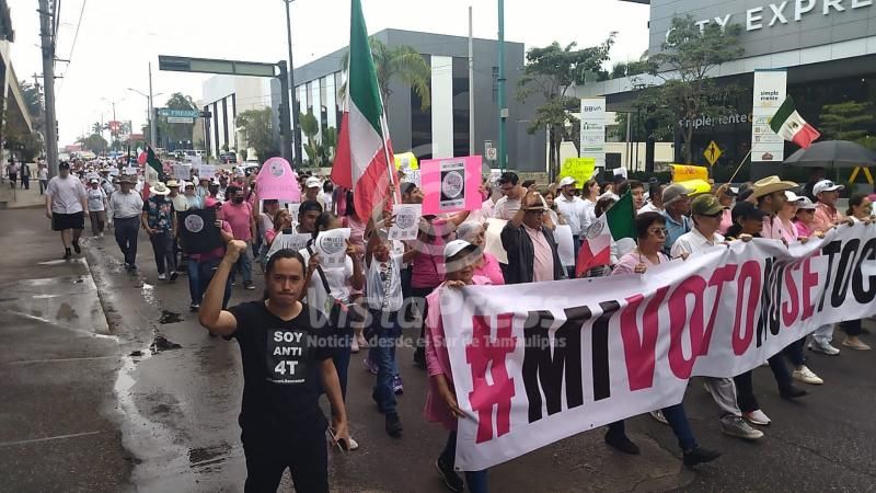 Tampico, Tam.- Al menos unas mil personas marcharon en contra del Plan B de la Reforma Electoral propuesta por el Presidente Andrés Manuel López Obrador.