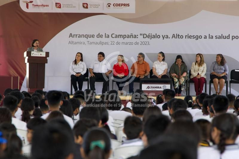 Altamira, Tamaulipas.- El Gobierno del Estado que dirige Américo Villarreal Anaya, a través de la Secretaría de Educación en Tamaulipas, dio inicio a la campaña de anti vapeo “Déjalo ya. Alto riesgo a la salud por vapeadores”, siendo la primera entidad en el país en crear una estrategia propia y sumarse a las acciones del Gobierno Federal para concientizar y prevenir el uso de estos dispositivos entre las niñas, niños, adolescentes y jóvenes tamaulipecos.
