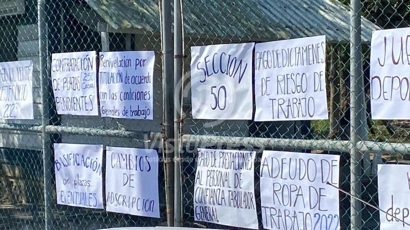 Patricia Arlene Cardenas Martínez Secretaria general de la Sección 50 de la Conagua, quien estaba al frente de la protesta, señaló que las prestaciones están retrasadas, tales como las becas educativas, recursos económicos por el día del niño, el día del padre, de la madre, entre otros.