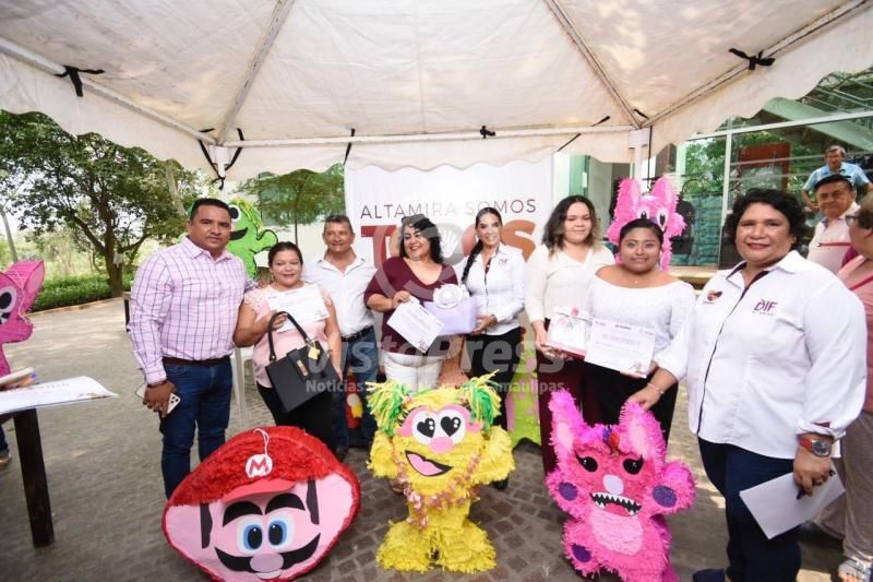 Altamira, Tamaulipas. -Un total de 35 mujeres fueron partícipes del curso – taller gratuito de elaboración de piñatas que el Gobierno Municipal de Altamira, encabezado por el alcalde, Mtro. Armando Martínez Manríquez efectuó en las instalaciones del Complejo Administrativo «La Retama», lugar en el que se concentran múltiples oficinas de la administración local.
