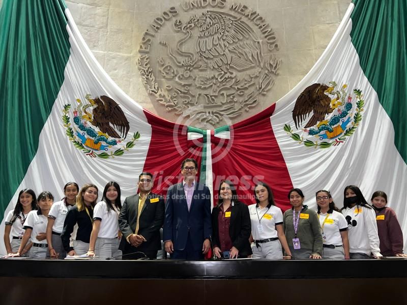 Ciudad de México, 27 de abril de 2023.- La Cámara de Diputados recibió a un grupo de más de 60 jóvenes alumnos destacados del Centro de Bachillerato Tecnológico Industrial y de Servicios #103 » Francisco Javier Mina» de Ciudad Madero, Tamaulipas. Los estudiantes, quienes han sobresalido en diversas disciplinas académicas y deportivas, tuvieron la oportunidad de conocer las instalaciones de San Lázaro gracias al diputado federal Erasmo González Robledo.