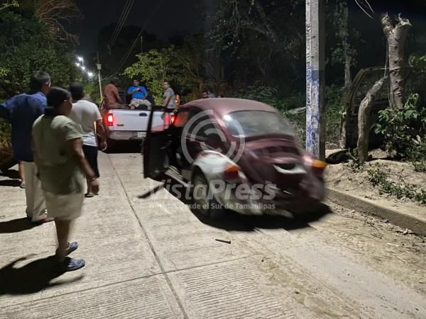 El también conocido automóvil como » Vocho» sufrió severos daños en sus neumáticos y gran parte de la carroceria, lo que le impidió continuar circulando, siendo orillado por los mismo vecinos que se sumaron a redactarlo.