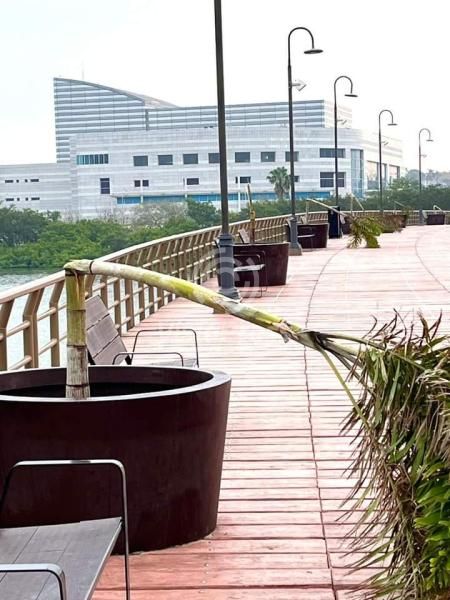 José Schekaiban Ongay Secretario de Servicios Públicos en Tampico dijo que la mañana del domingo aparecieron las palmeras del puente peatonal de la Laguna del Carpintero destrozadas, así como señaléticas y demás plantas de ornato.