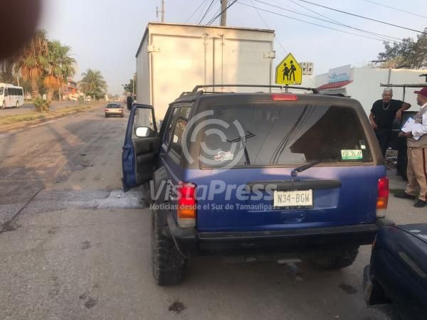 Dicho vehículo se estrelló en la parte posterior de una camioneta Chevrolet color blanco modelo 2002, con matrícula del estado de Tamaulipas, unidad que se encontraba estacionada y propiedad de Alfonso Jesús «N» de 53 años de edad, quedando el vehículo responsable asegurado con una grúa y trasladado al mesón municipal, a fin de que su propietario se haga responsable de los daños materiales generados.