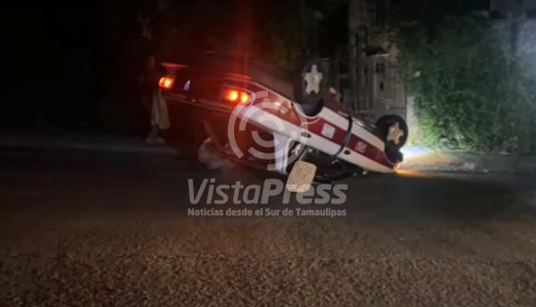 En su huida y por conducir el taxi bajo los influjos presuntamente del alcohol, el chofer perdió el control de su unidad motriz, y terminó por volcarse en la calle Cuauhtémoc en la colonia Niños Héroes