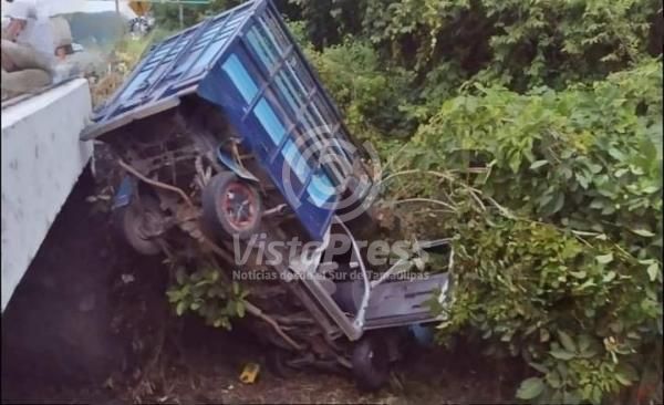 Platón Sánchez, Ver.-Dos mujeres comerciantes procedentes del municipio de Jaltocan en el estado de Hidalgo, a punto estuvieron de morir aplastadas por su propia camioneta, luego de caer desde lo alto de un puente.