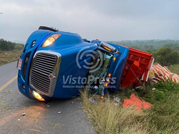 El trailer quedó sobre el carril izquierdo, lo que paralizó la circulación vial durante varias horas, hasta el arribo de las corporaciones policiacas.