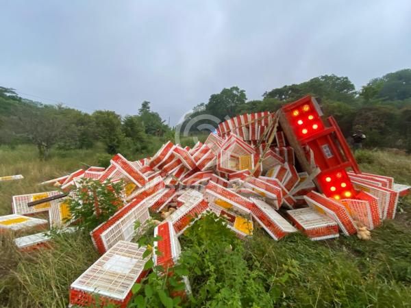 Tantoyuca, Ver.-Un trailer cargado con pollos volcó sobre la carretera federal 127 Alazán – Canoas; el operador tuvo que ser trasladado aun nosocomio de la ciudad, tras resultar lesionado.