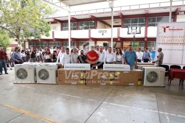 Recientemente, se han proporcionado aires acondicionados completamente nuevos en otras instituciones educativas. Como ejemplo de esto, se entregaron 8 aires acondicionados al CBTIS 105, y 3 más en la Escuela «Estado de Tamaulipas» en fechas anteriores.