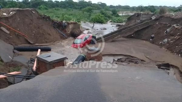 Esto en la calle de Río Rhin con Río Guadiana, y Río Duero, en el fraccionamiento Lomas IV, se vio afectado un vehículo sedán, que materialmente quedó atrapado entre el resquebrajamiento de las arterias.