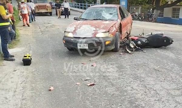 Tantoyuca, Ver.- Esta mañana se registró un lamentable accidente donde un motociclista se impactó contra un automóvil Chevrolet, tipo Cavalier color rojo, con placas de circulación del Estado de Veracruz; fue el conductor de esta última unidad quien perdió la vida de manera instantánea, mientras que el motociclista resultó gravemente lesionado.