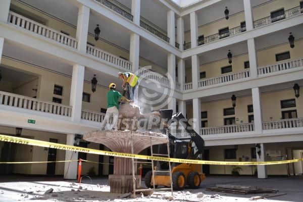 Lo anterior lo informó el secretario de Obras Públicas, Pedro Cepeda Anaya, quien explicó que dicha fuente contaba con daños y grietas significativas en su estructura. De igual manera, destacó los trabajos de restauración y rehabilitación que se realizarán en las escalinatas de piedra de los accesos principales y en los sanitarios públicos en todos los niveles del inmueble, con la finalidad de proporcionar un servicio confortable e higiénico a los servidores públicos y ciudadanos que hacen uso de ellos.