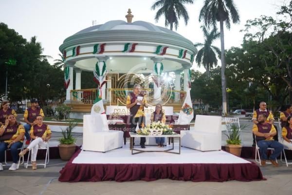 Para celebrar la mañanera número 100 fue escenario la plaza constitución de la zona centro de Altamira, en donde también estuvo acompañando la presidenta del sistema DIF, Rossy Luque de Martínez, realizándose con presencia de funcionarios federales, estatales, municipales y ciudadanía en general.