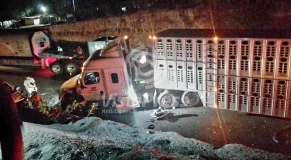Tampico Alto, Ver.-El choque entre un tráiler de transporte para ganado, y una camioneta con logotipos de Telmex, dejó como saldo una persona fallecida, y elevados daños materiales.