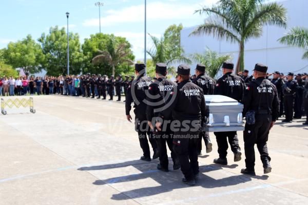 ‘’No existe para quienes ejercemos el mando mayor dolor que entregar el cuerpo de uno de nuestros elementos caídos aún sea esto por la patria’’, manifestó el secretario de seguridad pública de Tamaulipas, Mtro. Sergio Hernando Chávez García, quien encabezó la guardia de honor.