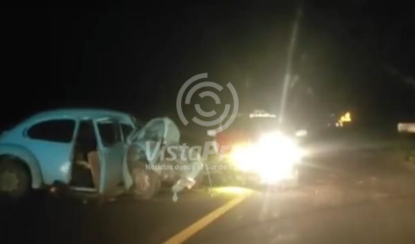 Platon Sánchez Ver. -En el transcurso de la noche se registró un fuerte choque entre un automóvil marca Volkswagen, tipo sedán -vocho-, color azul y un automóvil Nissan, tipo Tsuru, color rojo con blanco en su modalidad de taxi, los cuales quedaron completamente destrozados de la parte frontal.
