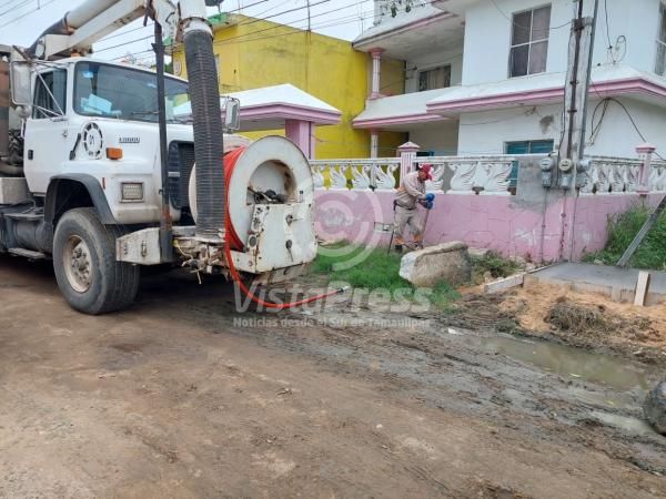 Mientras que en la calle Lima, entre Alcatraz y Amaranto, de la colonia Lomas de Monte Alto, del sector Monte Alto, se realizó la limpieza de registros y pozos de visita, además del mantenimiento de la línea general de drenaje, utilizando también un vehículo de succión.