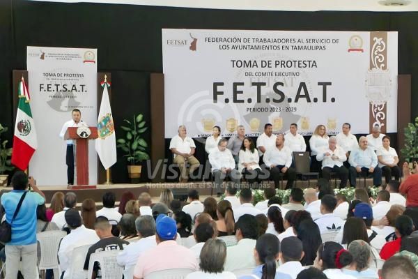 Como acto principal, el representante del Gobernador de Tamaulipas, Américo Villarreal Anaya, en la investidura del secretario de Gobierno Héctor Villarreal encabezó la Toma de la Protesta a Azael Portillo como secretario de la FETSAT y al Comité Ejecutivo Estatal.