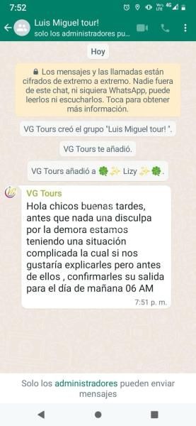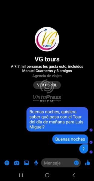 Al menos 20 personas denuncian su molestia a través de redes sociales por el presunto fraude por parte de la agencia de viajes “VG Tours”, quienes aseguran que los representantes de la empresa cancelaron el viaje para asistir al concierto de Luis Miguel programado para este miércoles en la ciudad de Monterrey, Nuevo León.