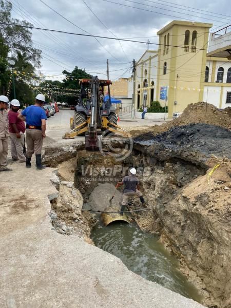 La obra consiste en la reposición de un colector de 1.52 metros de diámetro, debido a que la tubería original colapsó, ocasionando un hundimiento en el pavimento de la calle, lo cual fue detectado de manera oportuna.