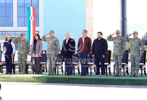 En el evento estuvieron presentes: Luis Cresencio Sandoval, secretario de la Defensa Nacional; Luisa María Alcalde Luján, secretaria de Gobernación; Juan Pablo De Botton Falcón, subsecretario de Hacienda; el general retirado André Foullon Van Lissum, titular de la Agencia Nacional de Aduanas; general Maximiliano Cruz Ramos, comandante de la cuarta Región Militar; general Juan José Gómez Ruiz, comandante de la octava zona militar; general José Hernández Macías, comandante de la Guarnición Militar de Nuevo Laredo y el coronel Francisco Alvarado Terán, coordinador estatal de la Guardia Nacional en Tamaulipas; el secretario general de Gobierno, Héctor Joel Villegas González; el secretario de Seguridad Pública, Sergio Hernando Chávez García, además de invitados especiales, como la presidenta municipal Carmen Lilia Canturosas Villarreal, generales, jefes, oficiales y personal de tropa del Ejército Mexicano y sus equivalentes en la Guardia Nacional.