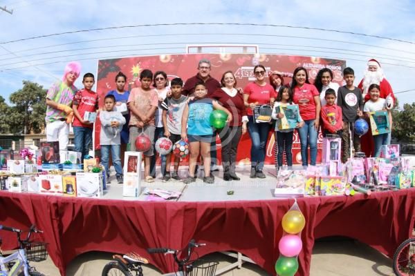 En este evento navideño, organizado por la regidora Nadia Flor Torres Martínez, presidenta de la Comisión de Asentamientos Humanos y Obras Públicas, se contó con un ameno show de payasos, así como la destacada presencia de Santa Claus y sus ayudantes quienes se tomaron la fotografía del recuerdo entre las decenas de niños asistentes.