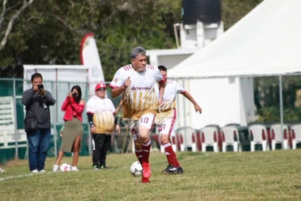 Altamira, Tamaulipas.- Como marca la tradición desde hace más de 20 años, el presidente municipal de la urbe industrial, Dr. Armando Martínez Manríquez acudió al partido amistoso de fútbol del equipo Veteranos de Estación Colonia vs Veteranos del Ayuntamiento de Altamira, en el cual también arrancó la primera obra del presente año.