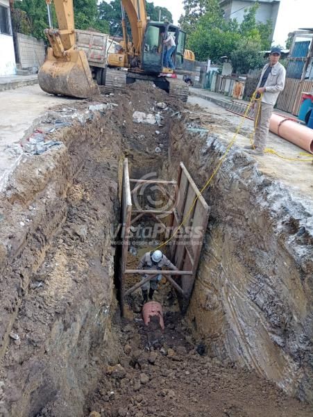 En la calle Del Rocío, entre Laguna de Champayán y Golfo Pérsico, de la colonia Las Brisas, personal de este organismo realizó la reposición de 60 metros líneas de tubería de 24 pulgadas de pvc alcantarillado, de un colector, a una profundidad aproximada de 5 metros.
