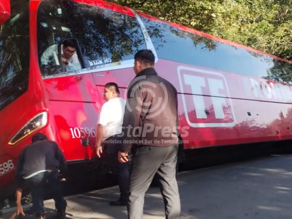 En ese lugar se ubicó un autobús marca Volvo, color rojo, con matrícula de circulación del servicio público federal, con número economico 10596, de la linea Frontera.