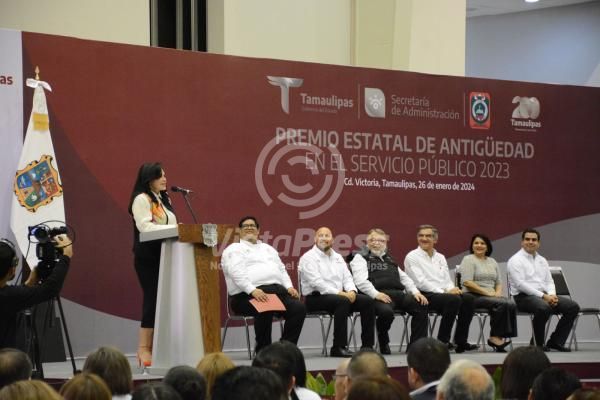 “Yo me sumo a este gran reconocimiento de los incrementos salariales que se dan a la base trabajadora como un principio de justicia social”, expresó el gobernador Américo Villarreal al encabezar la ceremonia del Premio Estatal de Antigüedad en el Servicio Público en la que entregó de manera simbólica 19 premios de un total de 1,308 entregados a servidores públicos, con una antigüedad de 20 y hasta 55 años de trabajo en el Gobierno del Estado.