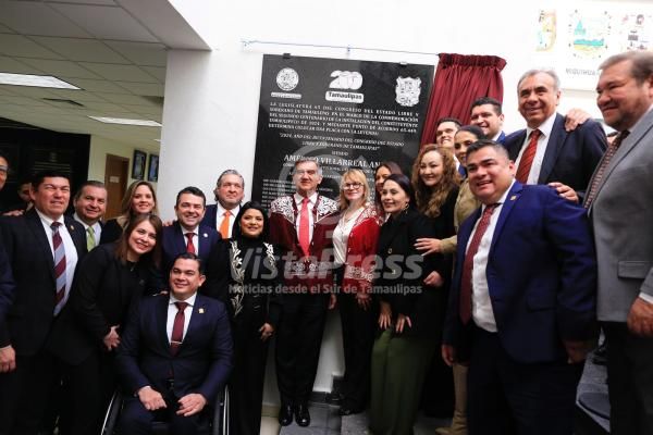 Tras la ceremonia protocolaria, el gobernador Américo Villarreal Anaya y la presidenta del Congreso, Úrsula Patricia Salazar se trasladaron a las escalinatas, donde se procedió a la develación de la placa.