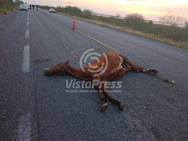 Sobre la cinta asfáltica se encontraba un equino contra el cual se impactó la mujer previo a derrapar fuera de la carretera.